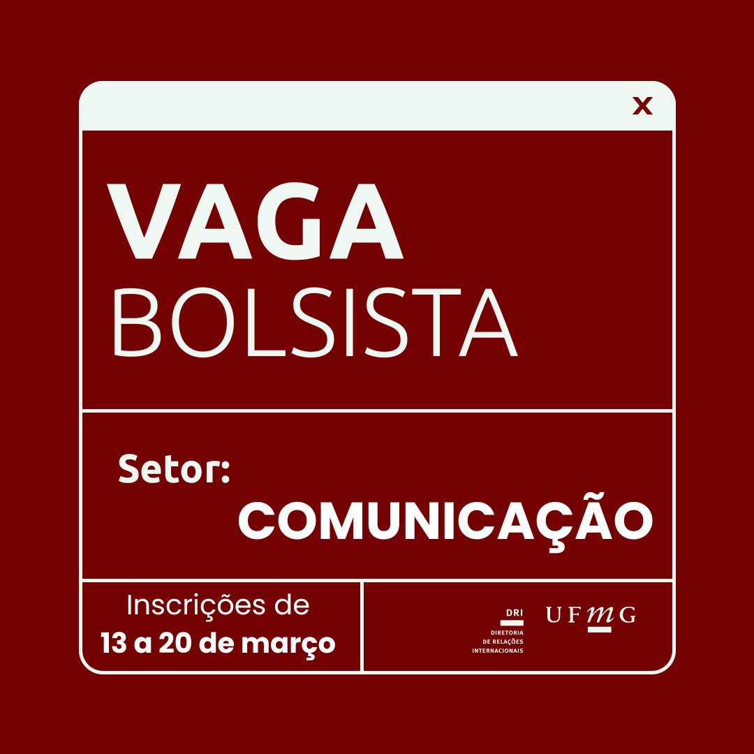 Inscrições abertas, no período de 13 a 20 de março de 2024, para seleção de candidatos(as) para 1 (uma) vaga de estágio não obrigatório (20 horas semanais), para atuação no Programa de Formação Profissional Complementar (PFPC) da Diretoria de Relações Internacionais (DRI) – Setor de Comunicação. O horário será das 9h às 13h, a serem cumpridas integralmente de forma presencial. A bolsa é no valor de R$ 550,00 (quinhentos e cinquenta reais). As atividades serão desenvolvidas na DRI – sala 104.