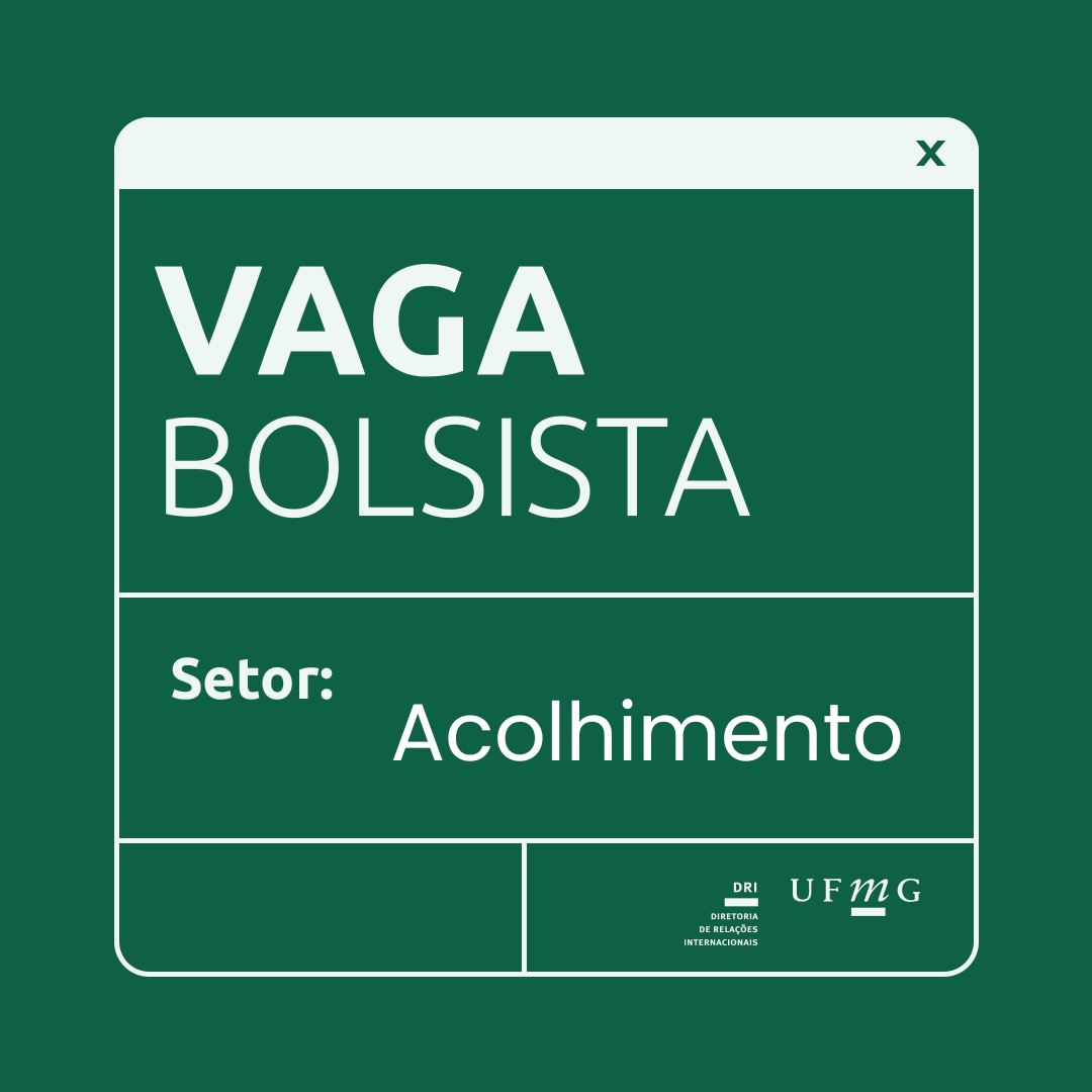 A Diretora-Adjunta de Relações Internacionais (DRI) da Universidade Federal de Minas Gerais (UFMG), Profa. Bárbara Malveira Orfanò, faz saber que, no período de 23/01/2024 a 14/02/2024, a DRI receberá, via e-mail acolhimento@dri.ufmg.br, com cópia para proficiencia@dri.ufmg.br, as inscrições de candidatos para o exame de seleção do Programa de Bolsas da Diretoria de Relações Internacionais para atuar no Setor de Acolhimento. Será ofertada 01 (uma) vaga de bolsa, com carga horária de 20 horas semanais, no valor de R$ 700,00.