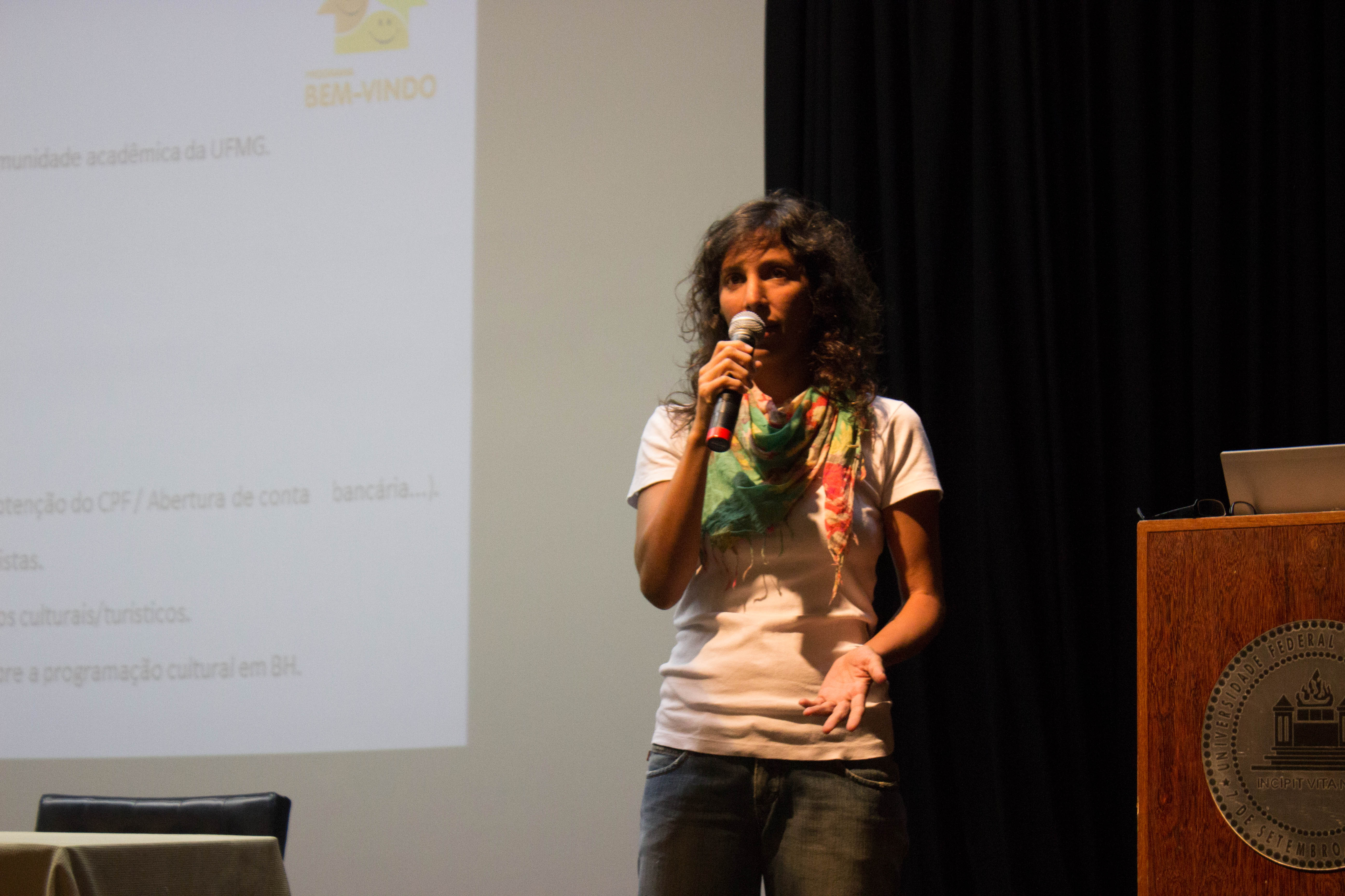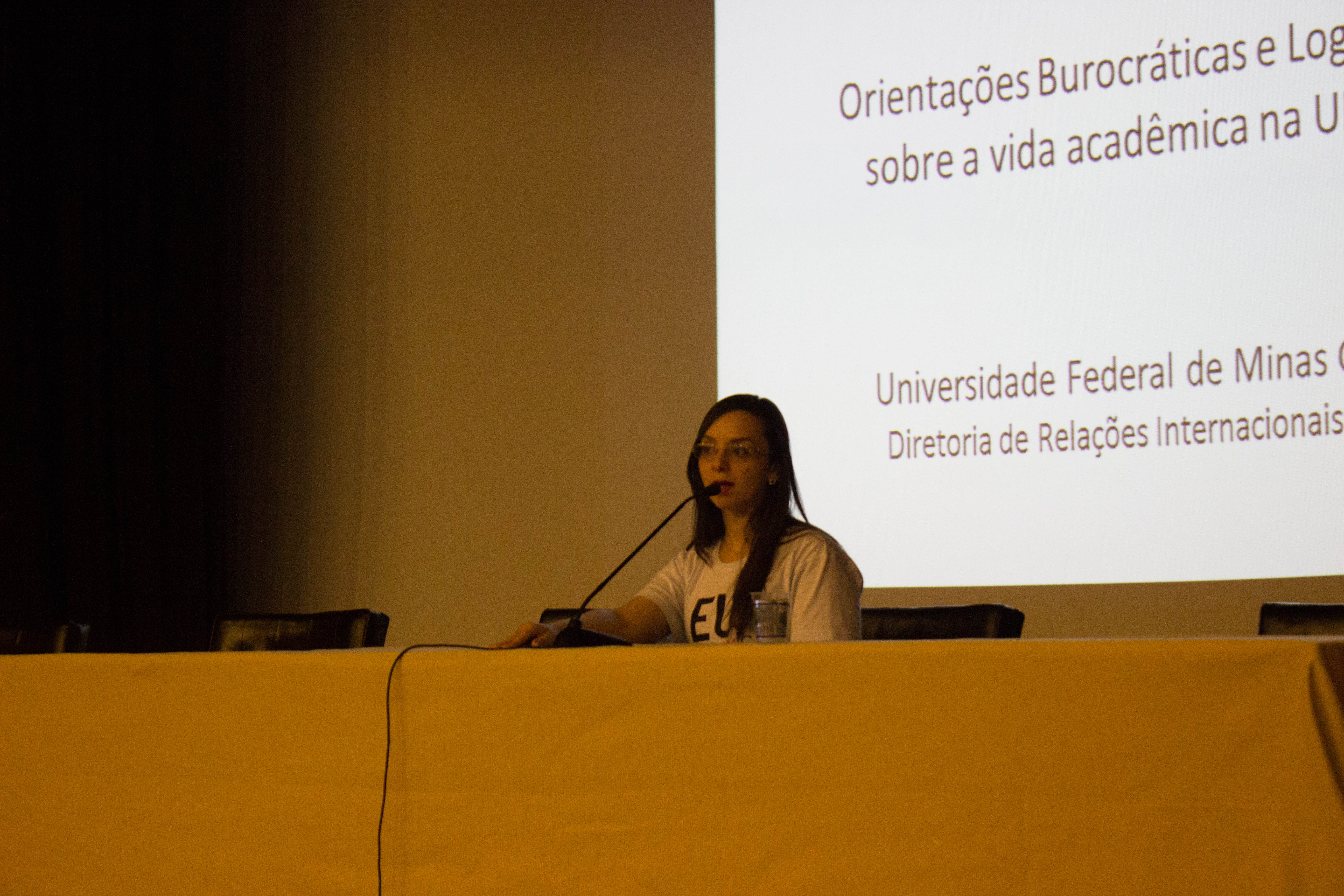 A servidora Moema iniciou a palestra dando orientações sobre a vida acadêmica, procedimentos para efetivação de registro e matrícula na UFMG.