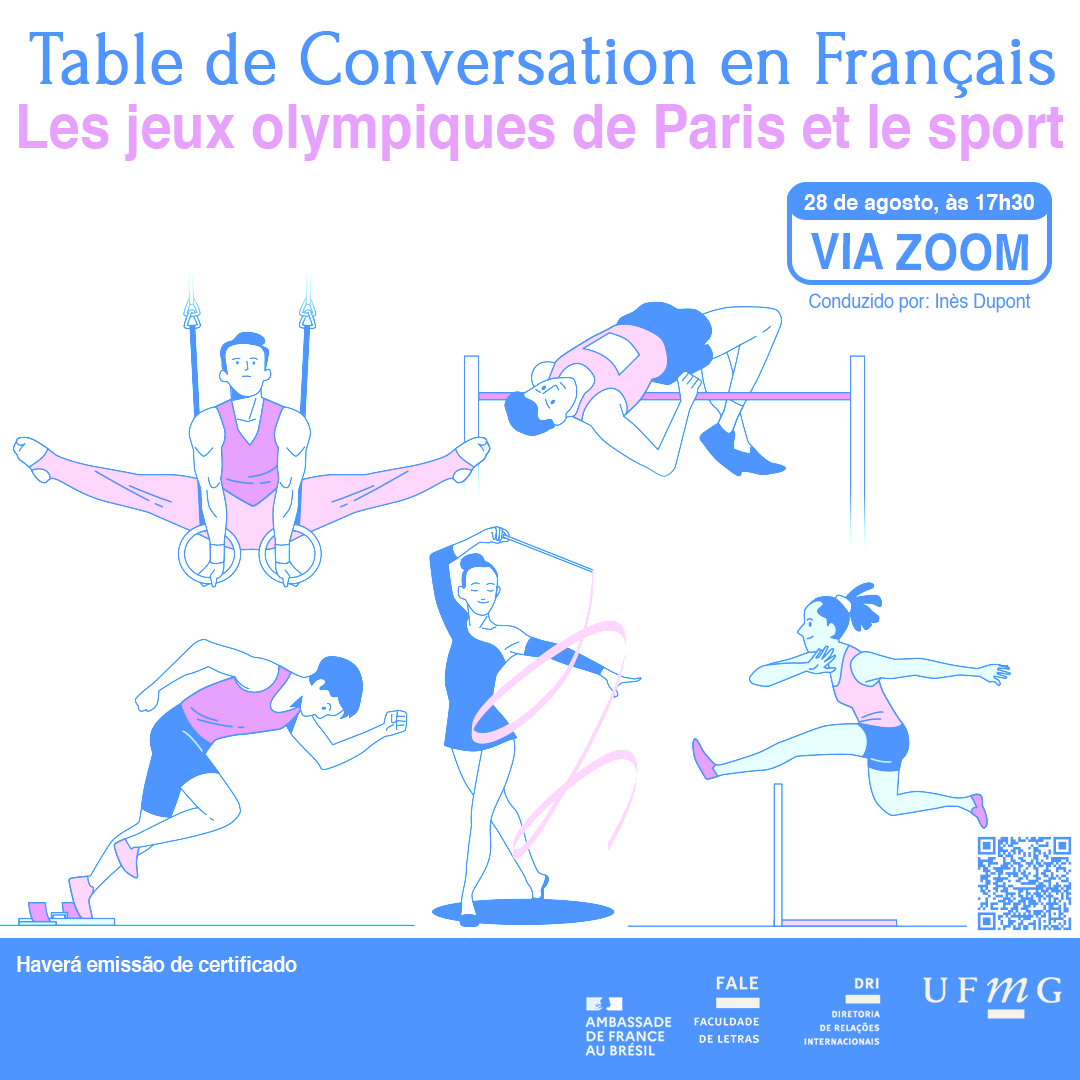 O Setor de Proficiência Linguística da Diretoria de Relações Internacionais (DRI) da UFMG convida toda a comunidade acadêmica a participar do “Table de Conversation en Français”, conduzido por Inès Dupont, assistente de ensino de língua francesa na UFMG, pela Embaixada da França.