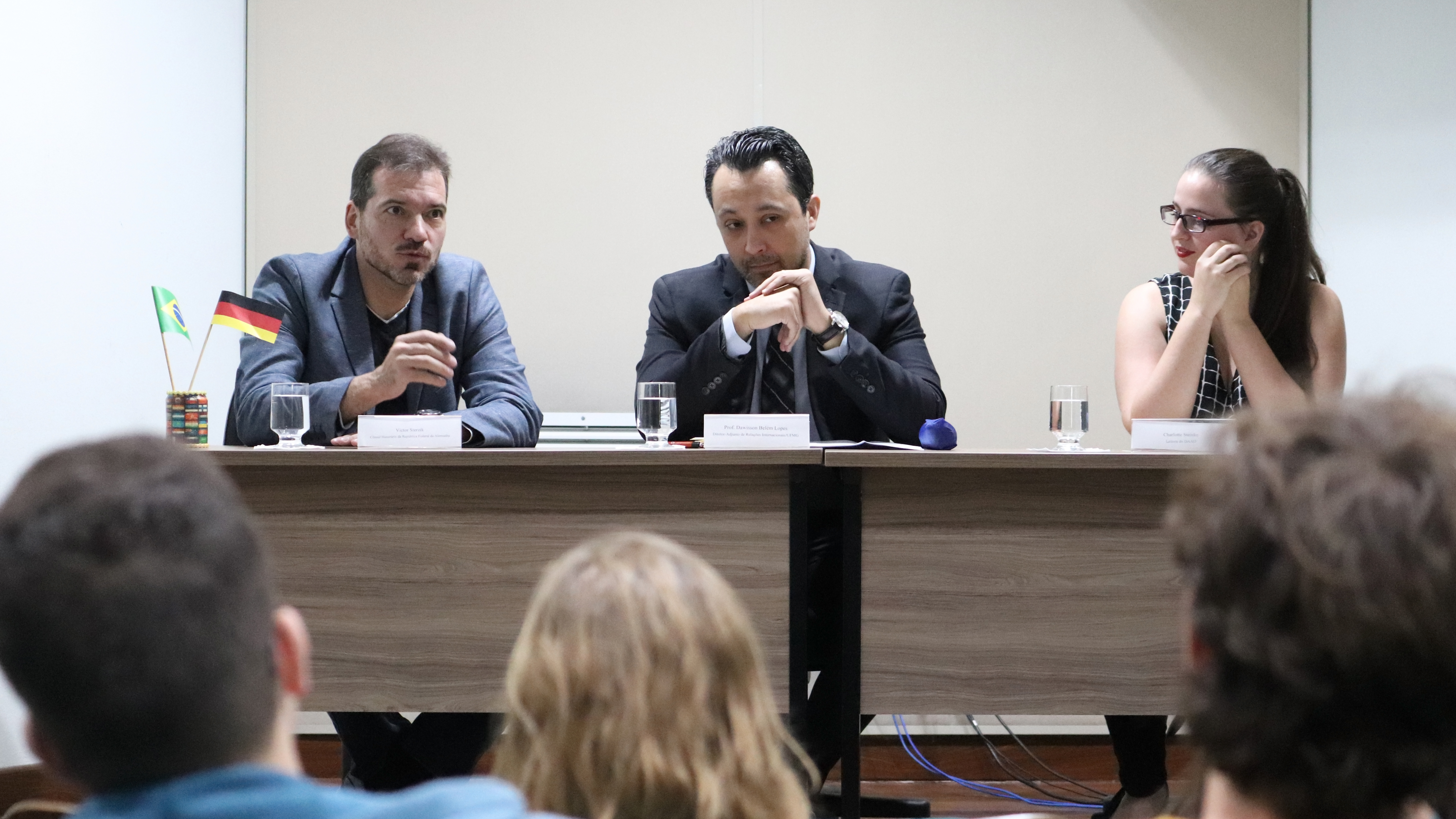Victor Sterzik, Cônsul Honorário da Alemanha, Professor Dawisson Lópes, Diretor-Adjunto de Relações Internacionais da UFMG, e Charlotte Steinke, Leitora do DAAD (Foto: João V. Carvalho/UFMG)