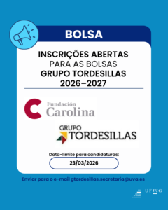 Abertas as inscrições para solicitação das bolsas do Grupo Tordesillas e da Fundação Carolina para: “Estadas curtas de investigação para professores doutores das universidades brasileiras e portuguesas do Grupo Tordesillas, com destino a universidades espanholas do Grupo Tordesillas.”
