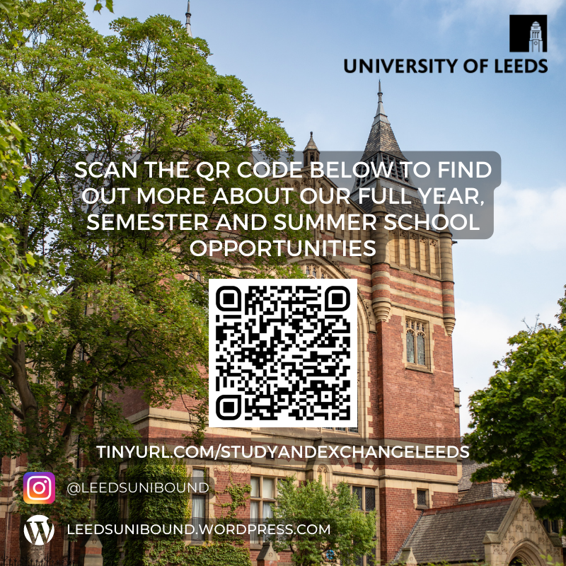 Para mais informações, visite o website da Leeds ou entre em contato com studyabroad@leeds.ac.uk
