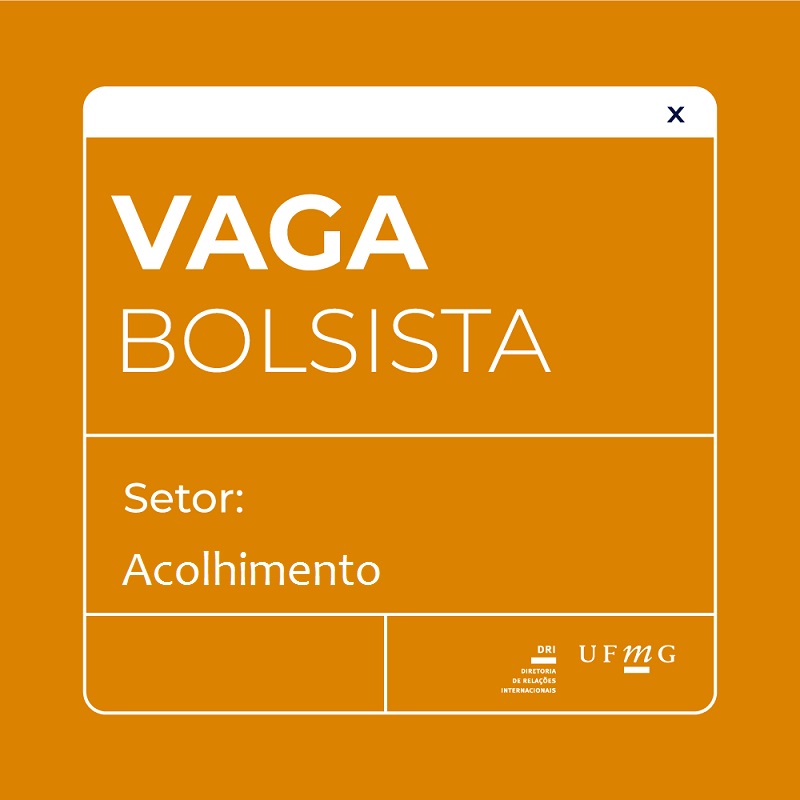 O Diretor de Relações Internacionais da Universidade Federal de Minas Gerais (UFMG), Prof. Aziz Tuffi Saliba, faz saber que, no período de 22/11/2021 a 31/12/2021, a Diretoria de Relações Internacionais (DRI) receberá, via e-mail acolhimento@dri.ufmg.br, com cópia para proficiencia@dri.ufmg.br, as inscrições de candidatos para o exame de seleção do Programa de Bolsas da Diretoria de Relações Internacionais. Serão ofertadas 02 (duas) vagas de bolsa para atuar no Setor de Acolhimento da DRI, com carga horária de 12 horas semanais, no valor de R$ 400,00.