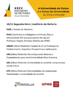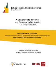 A Universidade Federal de Minas Gerais (UFMG) sediará, de 9 a 11 de novembro de 2025, o XXIV Encontro de Reitores do Grupo Tordesillas, que reunirá representantes de universidades ibero-americanas para debater os rumos da educação superior diante dos desafios éticos, tecnológicos e sociais do século XXI.