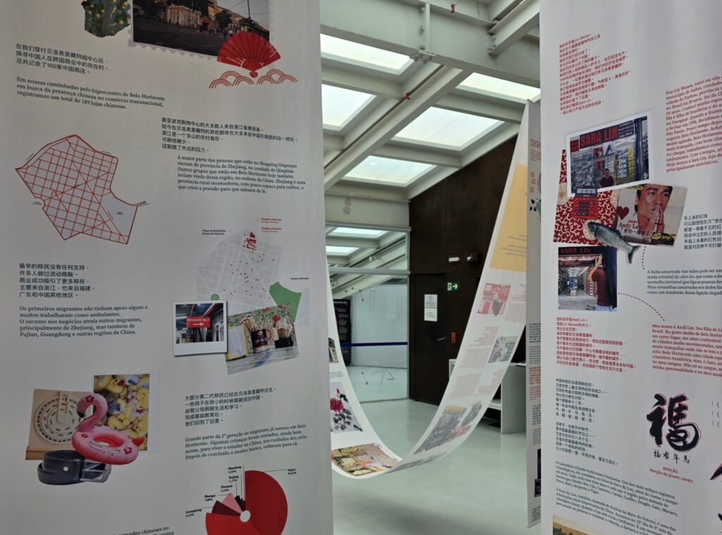 Partindo da experiência migratória entre China e Brasil, especialmente em Belo Horizonte, a mostra constrói um espaço onde memórias, trajetórias e narrativas da economia popular chinesa na cidade ganham forma e sensibilidade. Por meio de imagens, textos e elementos visuais, o público é convidado a perceber os fluxos de pessoas, mercadorias e saberes que moldam a convivência urbana e revelam dimensões cotidianas da globalização.