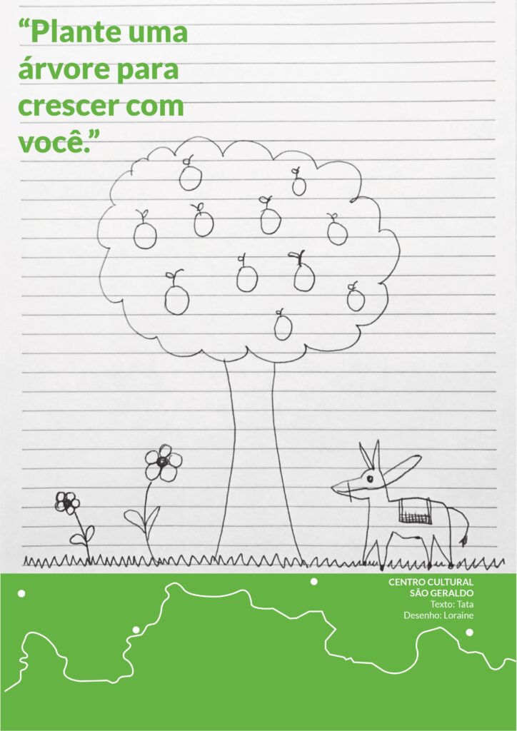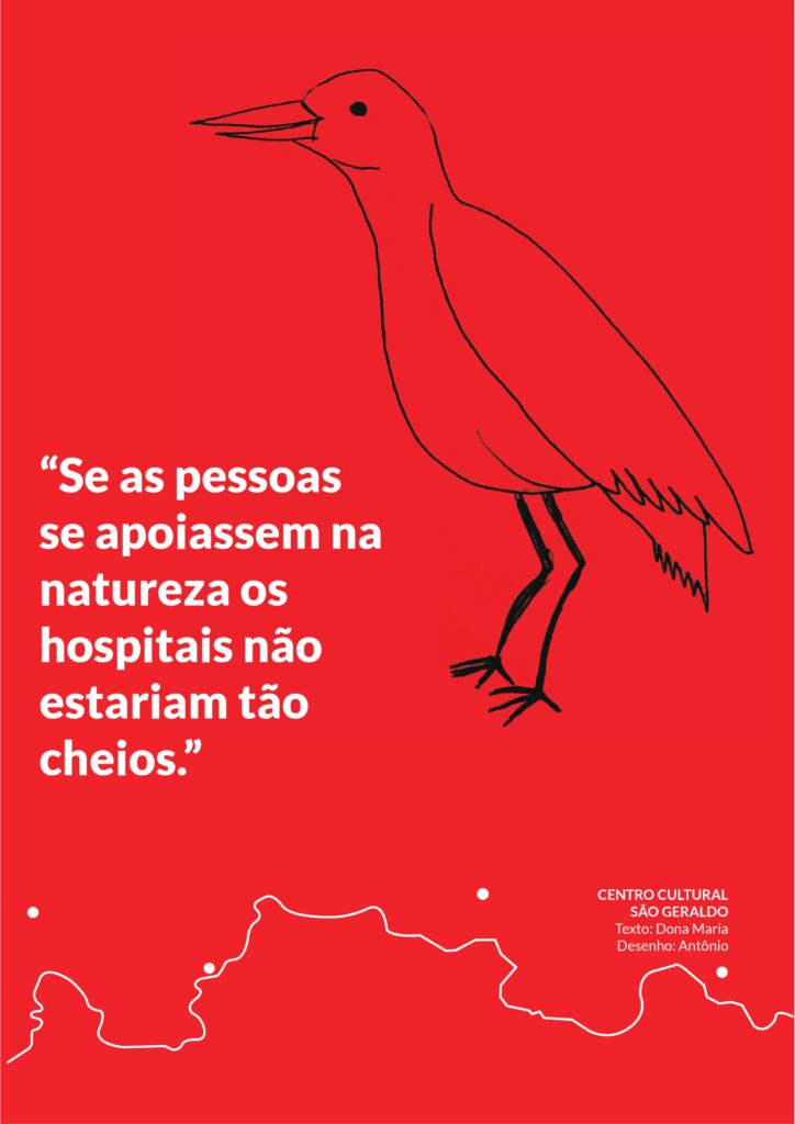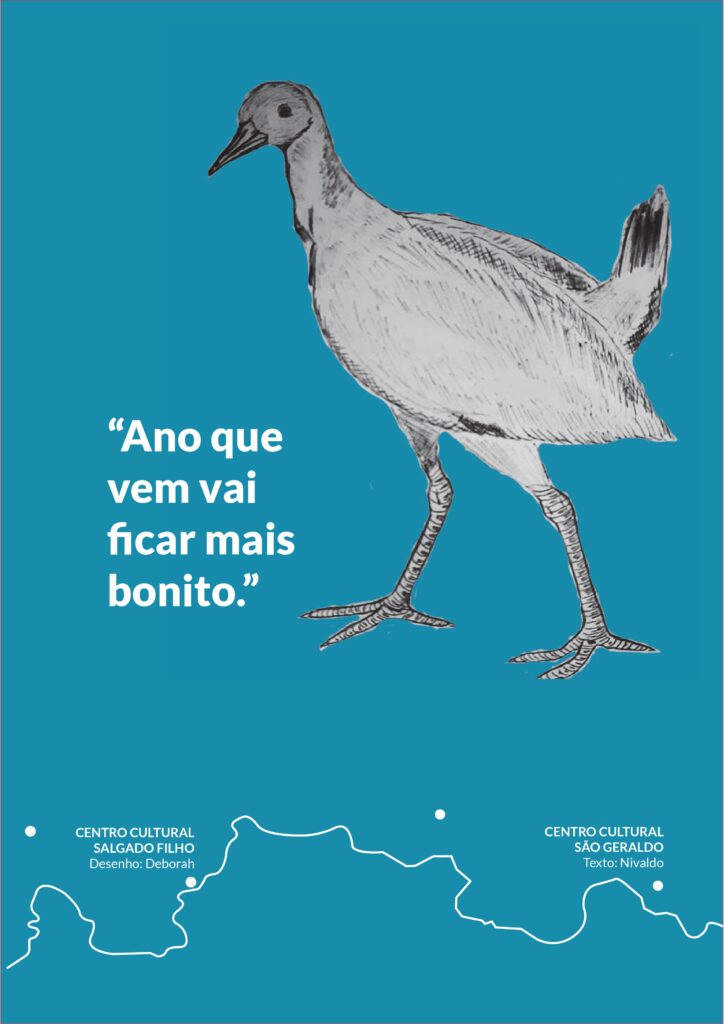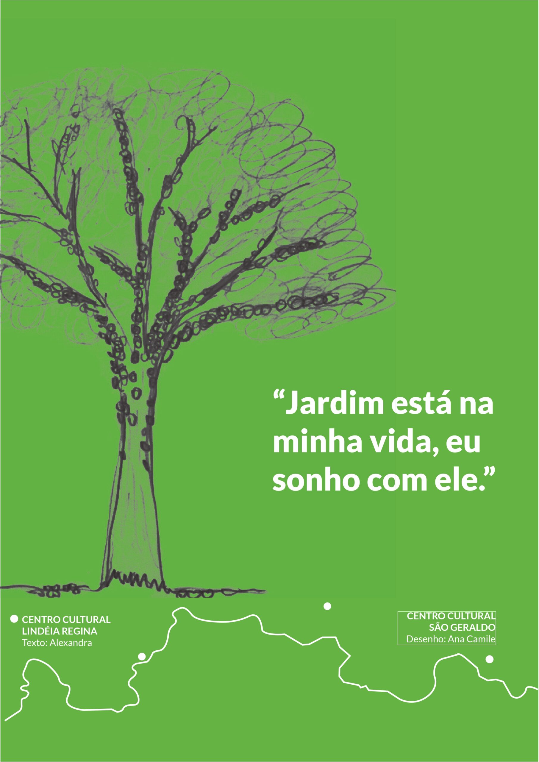A partir dessa abordagem, foram coletados relatos dos moradores, que serão veiculados pelo programa Rádio Janela, em várias regiões de BH. Os participantes também executaram desenhos que, associados a trechos dos relatos, foram utilizados na produção de imagens, para serem projetadas na fachada digital do Espaço do Conhecimento. Essas imagens também foram impressas, para serem aplicadas em muros nas imediações dos centros culturais.