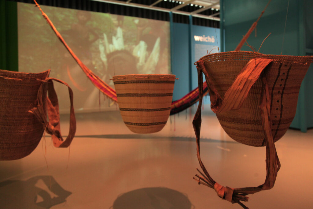 Inaugurada em dezembro de 2019, a exposição “Mundos Indígenas” representa um convite para que os visitantes possam conhecer, interagir e ampliar perspectivas sobre os povos originários brasileiros a partir das vozes e formas de expressão indígenas. Esses mundos repletos de sensibilidade e tradições são apresentados por curadores indígenas de cinco povos: Davi Kopenawa e Joseca Yanomami, do povo Yanomami, Júlio David Magalhães e Viviane Cajusuanaima Rocha, do povo Ye’kwana, Vicente Xakriabá, Edvaldo Xakriabá e Célia Xakriabá, do povo Xakriabá, Isael Maxakali e Sueli Maxakali, do povo Tikmῦ’ῦn (Maxakali), e Kanatyo Pataxoop e Liça Pataxoop, do povo Pataxoop.