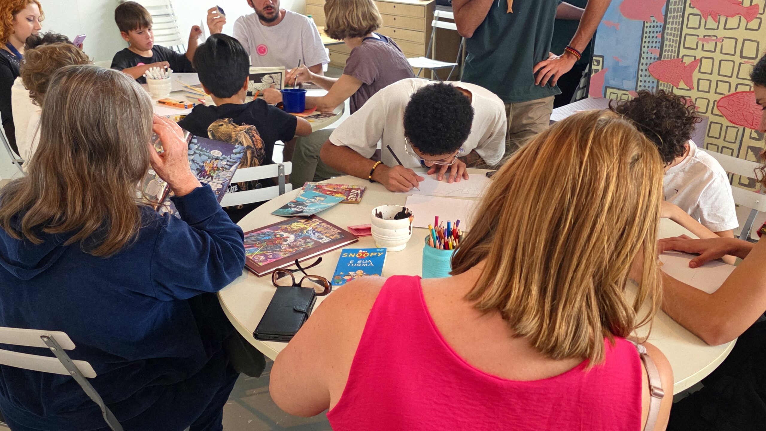Descrição: Com o objetivo de explorar os principais elementos envolvidos na criação de uma página de quadrinhos, os participantes serão convidados a desenvolverem uma narrativa curta inspirada na diversidade da fauna presente na instalação “Árvore da Vida” da exposição demasiado humano, em cartaz no Espaço do Conhecimento UFMG. A partir da observação e da imaginação, o público poderá criar uma fábula em quadrinhos, uma tirinha ou uma pequena história que valorize a vida animal em toda a sua riqueza e singularidade. A atividade é desenvolvida em parceria com o Grupo de Quadrinhos da Escola de Belas Artes (EBA) da UFMG.