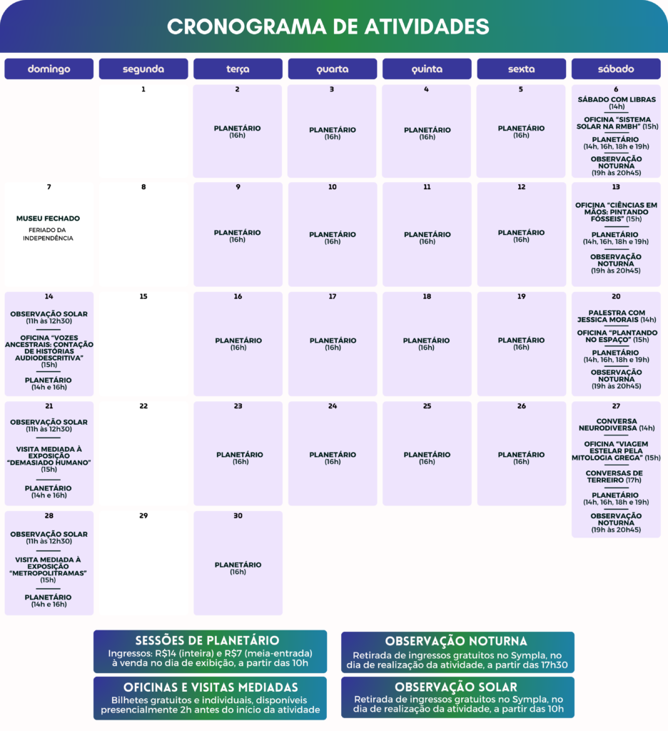 No mês de setembro, o Espaço do Conhecimento UFMG dá continuidade à sua programação dedicada à acessibilidade e à democratização da ciência e cultura!