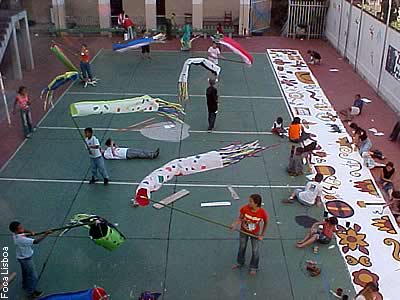 com renda branca algumas bocas-de-lobo no entorno da Igreja