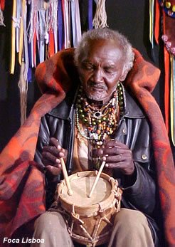 à cultura africana, um bongô entre as pernas