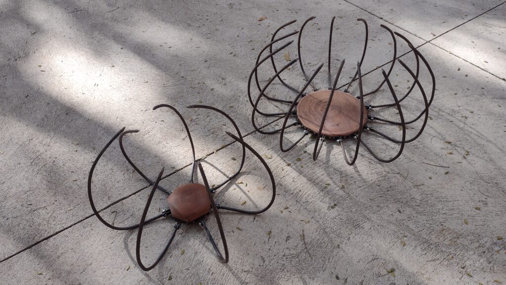 Escultura inspirada em botões de flores fechados que, com extremidades pontiagudas e rígidas barras de ferro ao redor, cria uma dualidade entre proteger-se ou aprisionar-se dentro dela.