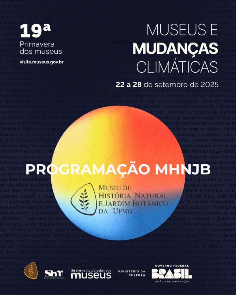 No dia 27 de setembro, sábado, teremos programação especial como parte da 19ª edição da Primavera dos Museus, um evento nacional promovido pelo Instituto Brasileiro de Museus (Ibram). A cada ano, um novo tema é proposto, e nesta edição, o mote “Museus e Mudanças Climáticas” reforça o papel dos museus como espaços de preservação, diálogo e mobilização frente a esse que é um dos maiores desafios do nosso tempo.