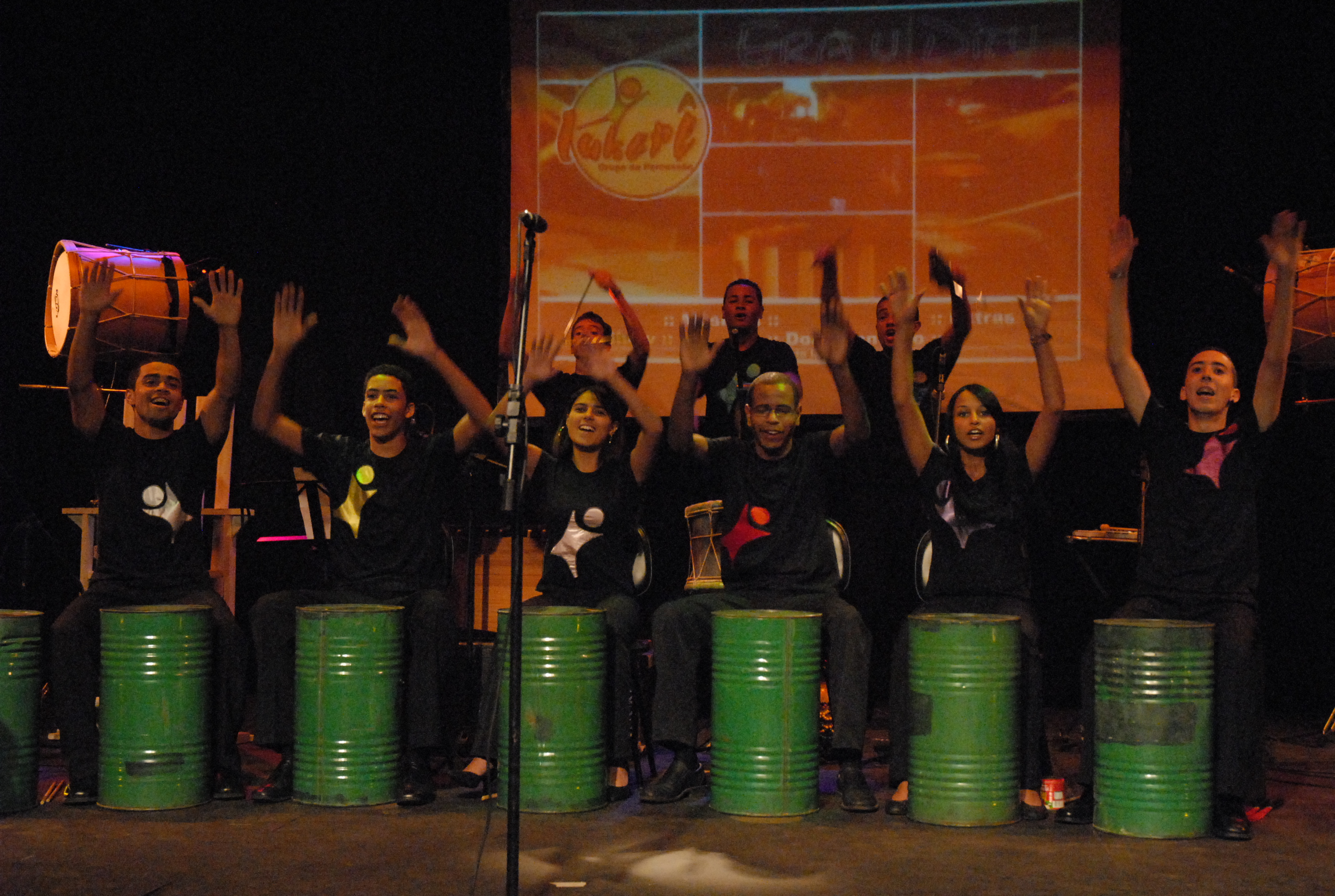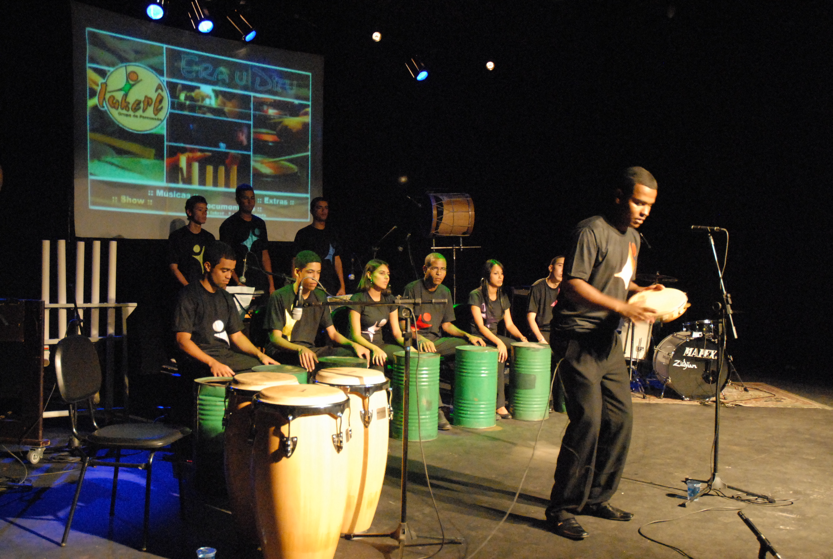 O grupo utiliza latas como instrumentos de percussão e produz um som contagiante, que agitou o público que foi ao Teatro do Instituto Casa da Glória