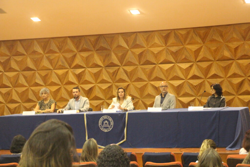 No dia 10, a mesa redonda discutiu as concepções sobre a extensão universitária, o potencial da formação em extensão para a formação nos cursos de Licenciatura e para as escolas de educação básica. Fizeram parte da mesa os professores Glaucinei Rodrigues Corrêa, pró-reitor de extensão da UFMG, que tratou da extensão na UFMG e as contribuições que ela traz para a formação dos estudantes, Helder Eterno, do Instituto de Química da UFU, que fez um panorama das Licenciaturas no Brasil, Saint Clair Marques, diretor da Escola Municipal de Ensino Fundamental Helbert José de Souza, que trouxe a experiência da instituição na qual trabalha e lembrou que “tudo o que acontece na comunidade reflete na escola e que os estudantes devem estar preparados para isso”, Seme Gebara Neto, do Instituto de Ciências Exatas da UFMG, que apresentou o projeto Descobridores da Matemática, além da técnica em assuntos educacionais, Ilma Bicalho, da Diretoria Acadêmica da Prograd da UFMG, que destacou a formação em extensão nos cursos de Licenciatura da UFMG. A mesa foi mediada pela Profa. Vanessa Regina Eleutério, do Departamento de Métodos e Tècnicas de Ensino da faculdade de Educação da UFMG.