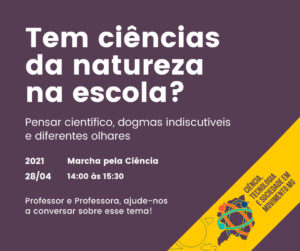Produza um vídeo, de até 3 minutos, ou um pequeno texto dando seu depoimento sobre como vê o ensino de ciências na escola. Replique esse convite para sua(eu)s aluna(o)s e também para pais, mães e responsáveis que acompanham a(o)s aluna(o)s na escola. Esses depoimentos serão organizados e disponibilizados para os convidados da Roda de Conversa: dois professores, um(a) estudante e uma mãe de aluna(o). Queremos fazer uma Roda de Conversa bem grande, abrangendo falas de diferentes comunidades escolares. Mas isso somente acontecerá se contarmos com sua participação! Envie seu depoimento e aqueles, que conseguir com o(a)s estudantes, pais, mães e demais participantes da comunidade escolar, para <cienciaeeducacao2020@gmail.com>, até 11 de abril. Entre nessa Roda com a gente!