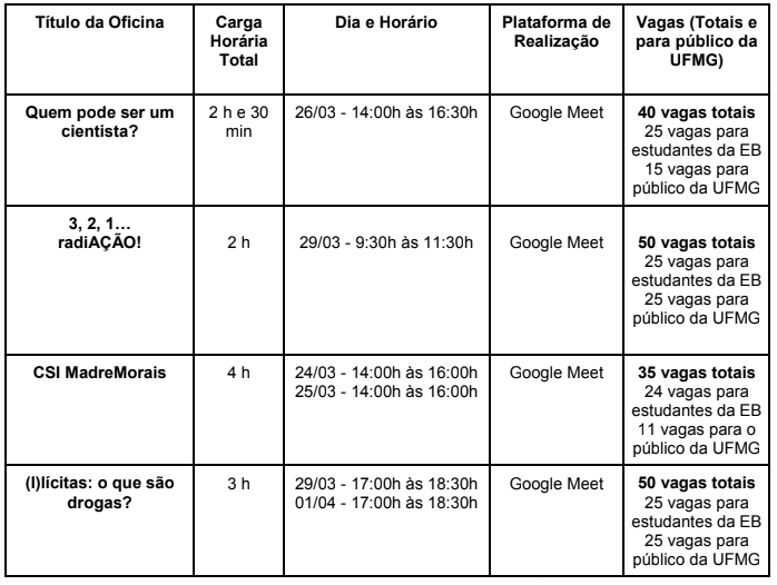 As oficinas serão ofertadas pelos residentes e foram elaboradas para estudantes da Educação Básica