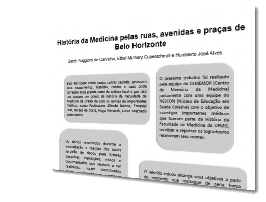 Conhecer a cidade e o acervo do Centro de Memória da Medicina podem ser atividades surpreendentes. A história da Faculdade está inserida na história de Belo Horizonte. Professores e profissionais que colaboraram não só com a história institucional mas com a melhoria da saúde da capital Mineira devem ser relembrados em lugares de memória. Divulgar este aspecto valoriza tanto as personagens quanto a instituição UFMG.