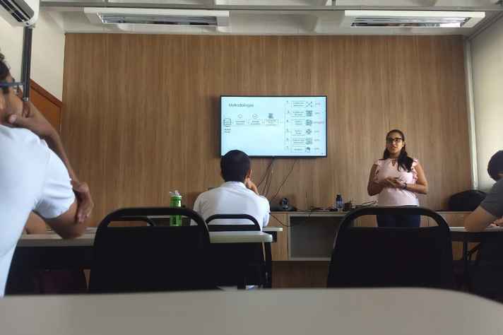 Bárbara Silveira durante a defesa: caracterização dos usuários de quatro grandes comunidades. Arquivo pessoal