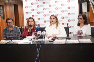 Sandra Goulart falou à imprensa ao lado da deputada Beatriz Cerqueira, do professor Vítor Mourthé e da ativista Raquel Werneck | Foto: @luizrochabh | Comunicação Mandato Beatriz Cerqueira