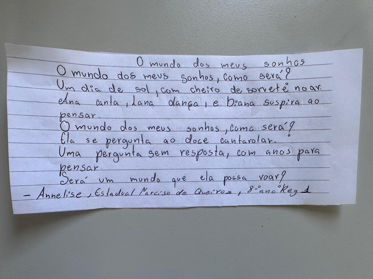 Annelise Emanuelle Assis Silva, estudante da Ensino Fundamental 2 (6º ao 9º ano), Escola Estadual Narcisio de Queiroz, do município de Conselheiro Lafaiete. Professora: Gislaine Maria Barbosa Antunes